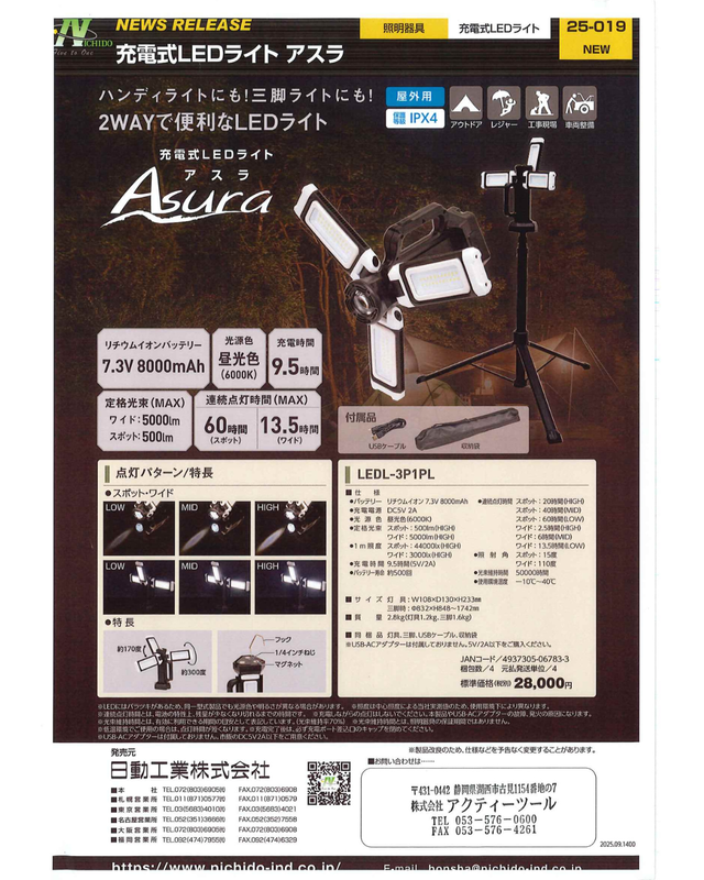 ハンディにも、三脚にも。 充電式LEDライト Asura(アスラ)